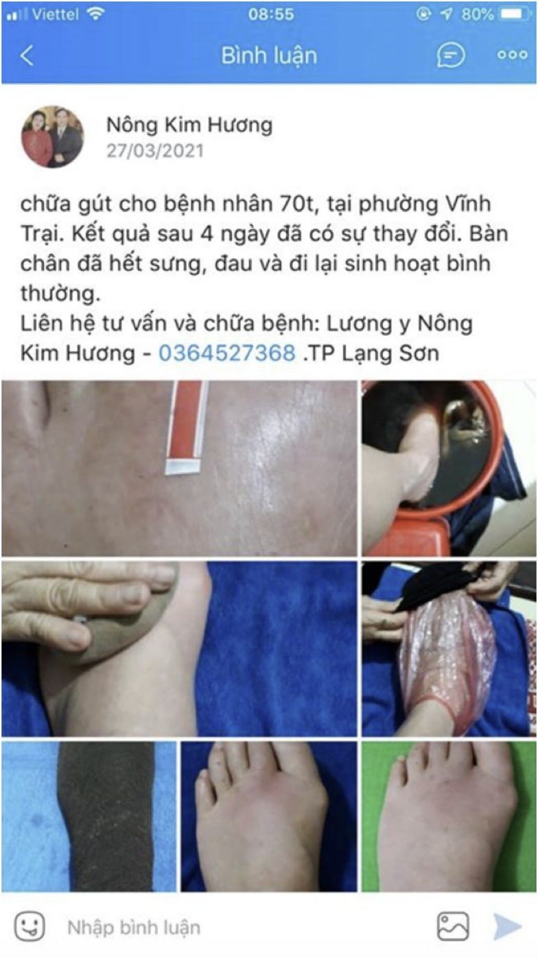 Điển hình như bệnh nhân 70 tuổi, ở phường Vĩnh Trại bị Gút chỉ sau 4 ngay điều trị chân của người bệnh đã hết sưng, đau và đi lại bình thường. Và còn nhiều trường hợp bị các vấn đề về hệ thần kinh cơ xương khớp đã được lương y Nông Kim Hương chữa trị thành công.